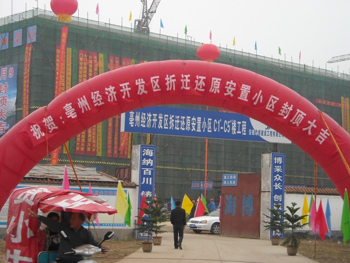 9月9日上午,金秋送爽、丹桂飄香,紅旗招展、鞭炮齊鳴,值國際(亳州)中醫(yī)藥博覽會暨第25屆全國(亳州)中藥材交易會隆重召開之際;我司承建的亳州經濟技術開發(fā)區(qū)拆遷還原安置小區(qū)C1~C5#樓工程順利封頂。
