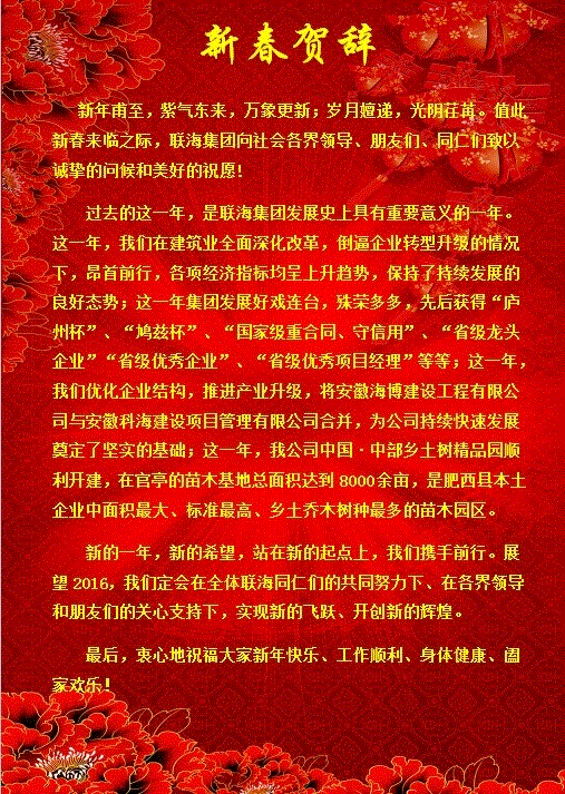 律回春暉漸,萬象始更新。2016年1月16日,“聯(lián)海集團”2015年度總結表彰暨2016年度發(fā)展計劃會議于上午9:00正式舉行,會議中各部門負責人就本部門的工作內容做了重要講話。 會后,一首...