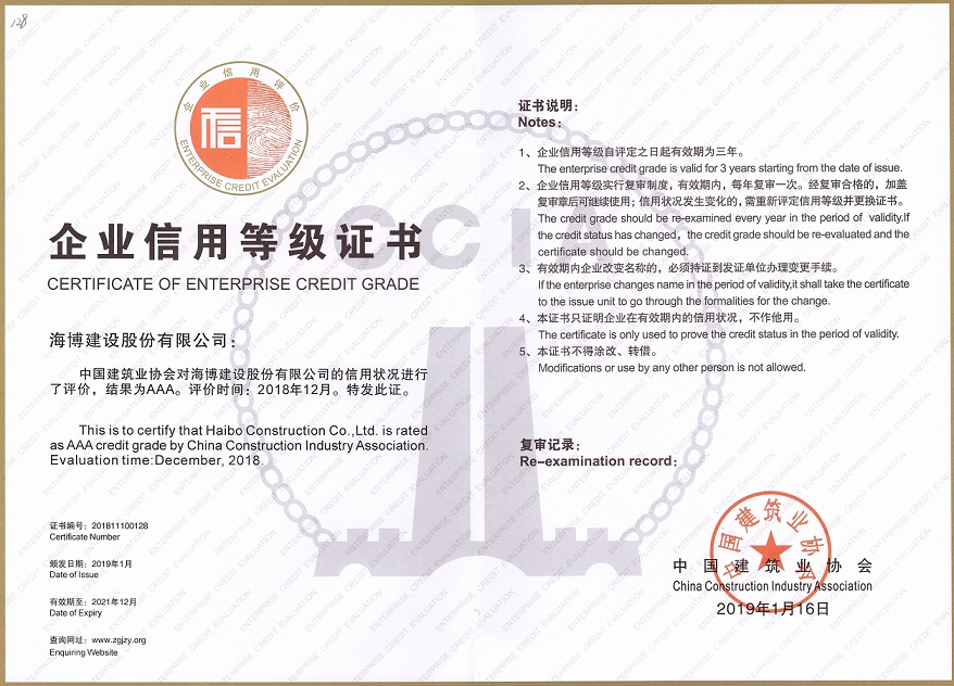 近期,中國(guó)建筑業(yè)協(xié)會(huì)通報(bào)表彰了2018年度全國(guó)建筑業(yè) AAA 級(jí)信用企業(yè),并頒發(fā)了榮譽(yù)證書。我司信用等級(jí)被評(píng)定為“AAA”級(jí),這是繼中華人民共和國(guó)水利部、中國(guó)施工企業(yè)管理協(xié)會(huì)給予評(píng)定的“AAA”級(jí)之后,榮獲的第三項(xiàng)國(guó)家主管行...