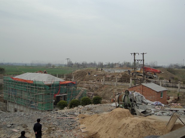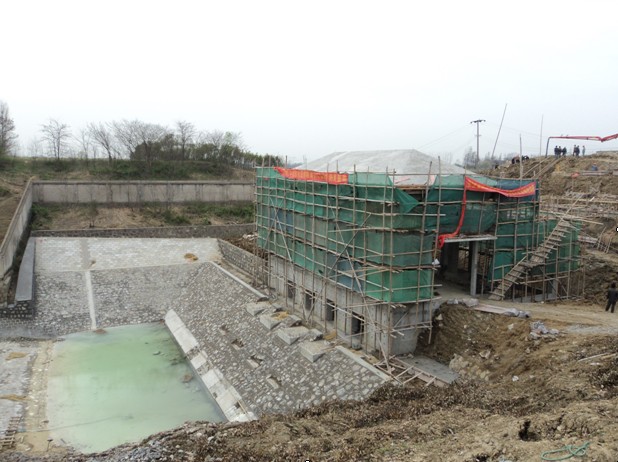中派站工程是本次肥西縣濱湖泵站更新改造工程的第6標段,工程位于肥西縣上派鎮(zhèn)與嚴店鄉(xiāng)交界處,距合安高速公路約2km。為老站拆除新建項目,是以灌溉為主兼有排澇功能的泵站。為了保證灌區(qū)農田春耕、春種用水需要,我公司自開工以來就加大投入、積極準備、合理安排。在所有6個標段中,第一個澆筑底板、第 一個實現結構封頂、第一個開始設備安裝。為工程按期完工打下了良好的基礎。