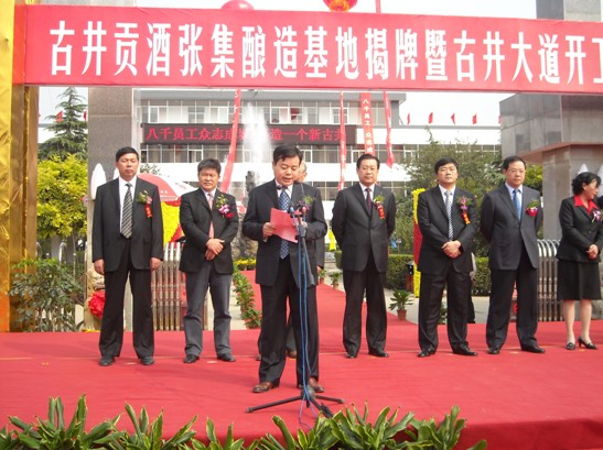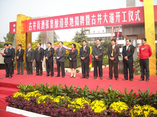 參加開工儀式的有亳州市市委書記、市人大常委會主任方春明,市委副書記、市長牛弩韜,市委常委、副市長袁方,譙城區(qū)委副書記、區(qū)長吳火權,古井集團黨委副書記、紀委書記王峰及我公司副總經(jīng)理韋東等。市委領導和公司副總經(jīng)理就張集鎮(zhèn)古井貢酒張集釀造基地揭牌暨古井大道開工發(fā)表重要講話,市委書記、市人大常委會主任方春明,市委副書記、市長牛弩韜為釀造基地揭牌 。