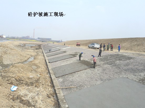 在生態(tài)護(hù)坡施工工段,也利用數(shù)個(gè)專(zhuān)業(yè)施工隊(duì)同時(shí)施工,流水作業(yè)。充分挖掘節(jié)拍間歇時(shí)間,提高施工速度。同時(shí)根據(jù)生態(tài)砼護(hù)坡的特點(diǎn),先期就做好了生態(tài)護(hù)坡試驗(yàn),大大提高了生態(tài)護(hù)坡的成活率。