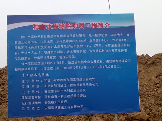 10月20日上午,馬鞍山市水利質(zhì)檢站專家對由我公司承建的和縣兩座?。ㄒ唬┬退畮飒?dú)山水庫和大金莊水庫除險加固工程的重要關(guān)鍵部位放水底涵基槽進(jìn)行了驗(yàn)收。