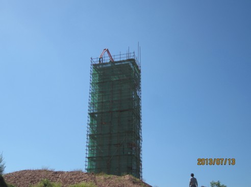 該工程造價約798萬元,工程內(nèi)容包括高29.1米的紀念碑一座、建筑面積4053m2的展覽館一座及花崗巖廣場道路鋪裝15700m2。項目自開工以來,我單位通過精心策劃、統(tǒng)籌安排、科學管理,克服了項目實施過程中的環(huán)境、技術(shù)及協(xié)調(diào)等諸多難點,本工程主體結(jié)構(gòu)于2013年7月13日順利封頂。