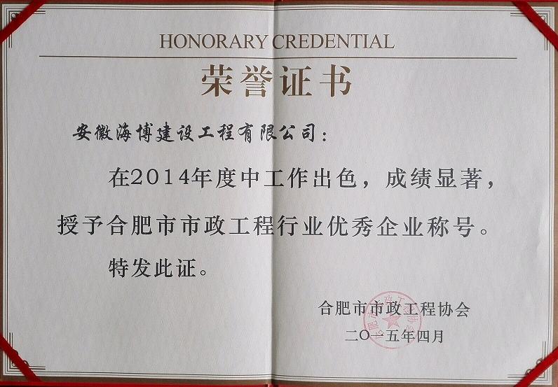 我公司一直致力于誠信發(fā)展、注重工程質量、確保安全生產(chǎn),被協(xié)會評為“合肥市市政工程行業(yè)優(yōu)秀企業(yè)”;同時,經(jīng)過協(xié)會提議,全體會員表決,我公司順利晉升為副會長單位。