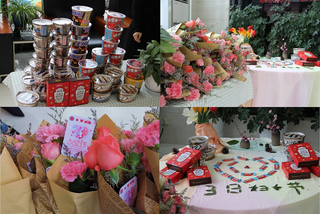 一句溫馨的祝福語“女神,節(jié)日快樂!”,一束嬌艷的花朵,一盒甜甜的禮品,一對陽光的帥小伙,迎接著緩緩走進來的聯海女神們。