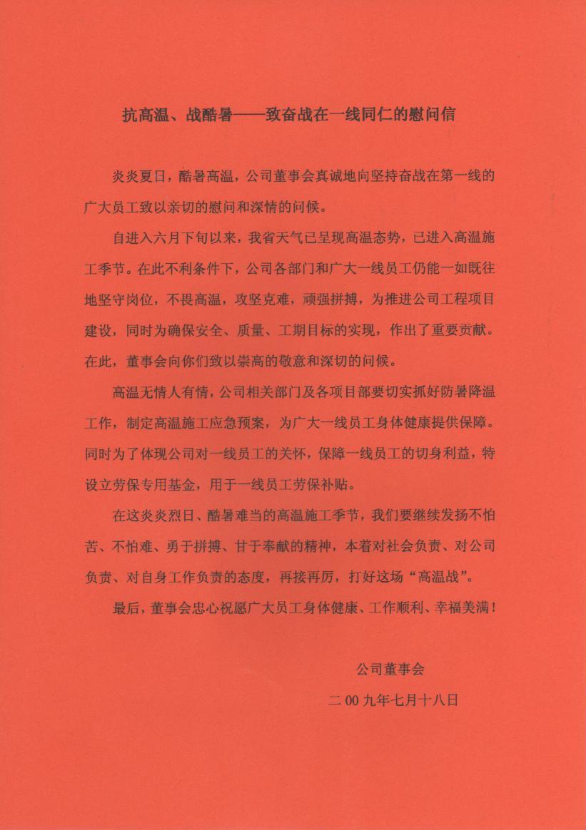 抗高溫、戰(zhàn)酷暑——致奮戰(zhàn)在一線同仁的慰問信